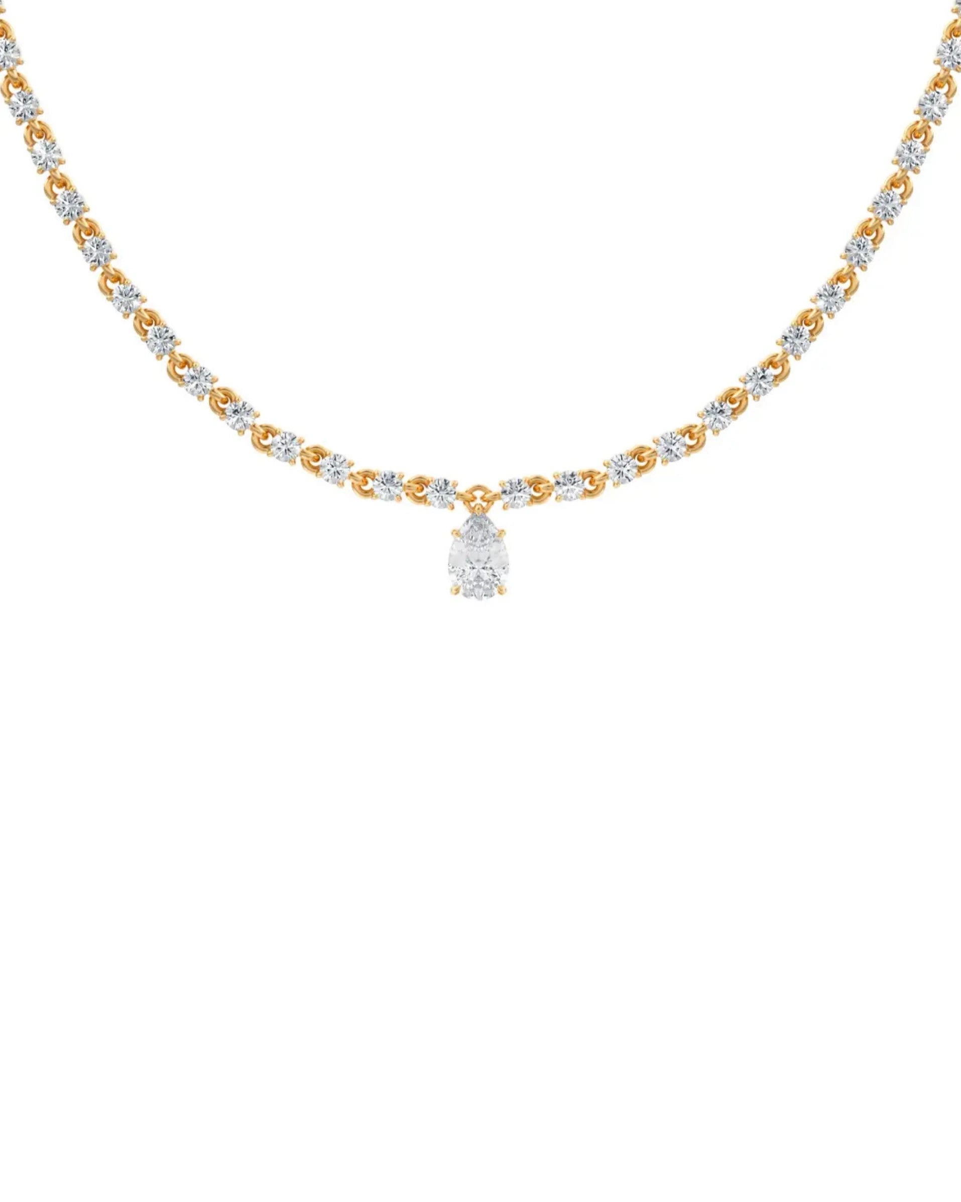 A delicate yet striking addition to your everyday collection. This diamond chain necklace features a pear-cut diamond drop pendant — adding the perfect touch of sparkle for those who want refined shine without the full glamour of a tennis necklace. Timeless, versatile, and effortlessly elegant.